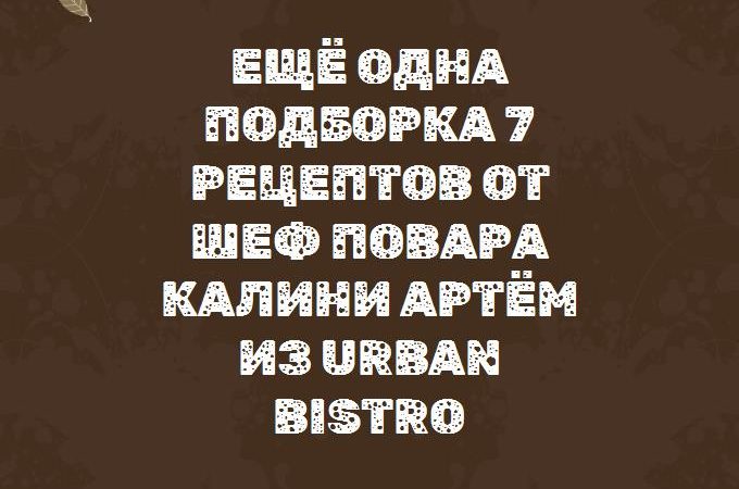ЕЩЁ ОДНА ПОДБОРКА 7 РЕЦЕПТОВ ОТ ШЕФ ПОВАРА КАЛИНИ АРТЁМ ИЗ URBAN BISTRO